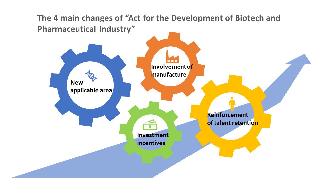 The 4 main changes of Act for the Development of Biotech and Pharmaceutical Industry.