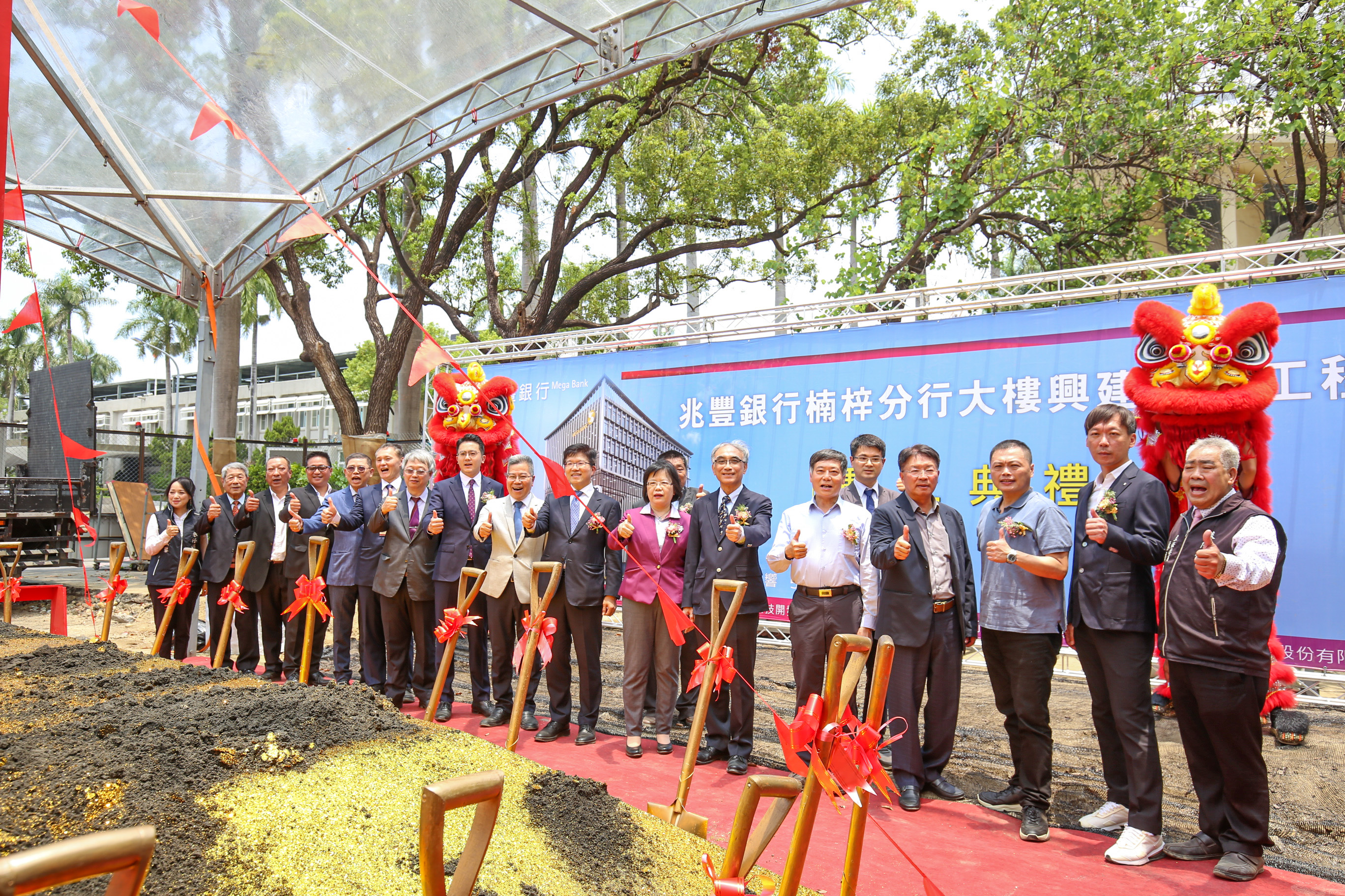 為提升楠梓科技產業園區產業創新空間,並加速老舊建物汰舊換新,兆豐銀行楠梓分行拆除既有的2層樓建物(兆豐銀行東行舍),今(31)日舉行新大樓開工動土典禮,楠梓科技產業園區行政場域更新再向前邁大步,將興建打造國際企業格局之高級廠辦大樓,以提供園區國際級、現代化的金融服務,落實園區永續發展理念。