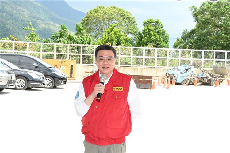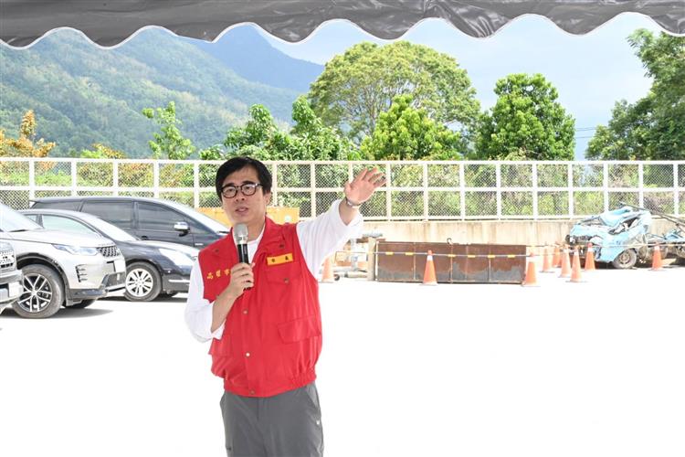 行政院卓榮泰院長心繫凱米颱風災後復水狀況,昨(2)日在行政院發言人陳世凱、經濟部次長何晉滄、高雄市長陳其邁、立法委員邱議瑩、行政院南部聯合服務中心執行長許乃文陪同下特別至台水第七區管理處高雄六龜 5,000噸配水池,聽取台水公司說明高雄地區災後供水狀況,並親自慰勞搶災遭遇土石流台水員工。