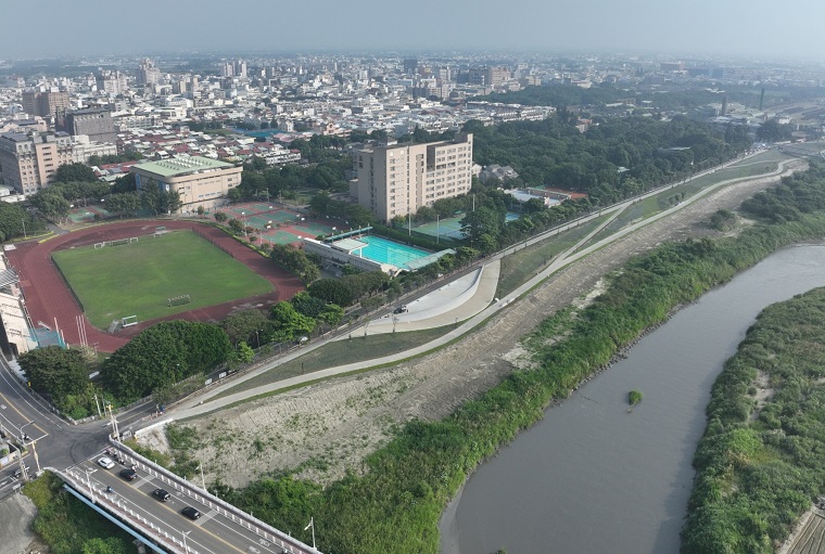 四、北港溪虎尾堤段整體環境營造工程(一期):第五河川分署採取國際競圖,突破傳統河川工程設計,導入創新思惟,透過環境綠化與公共空間營造,呈現具地方文化意象的親水廊道。