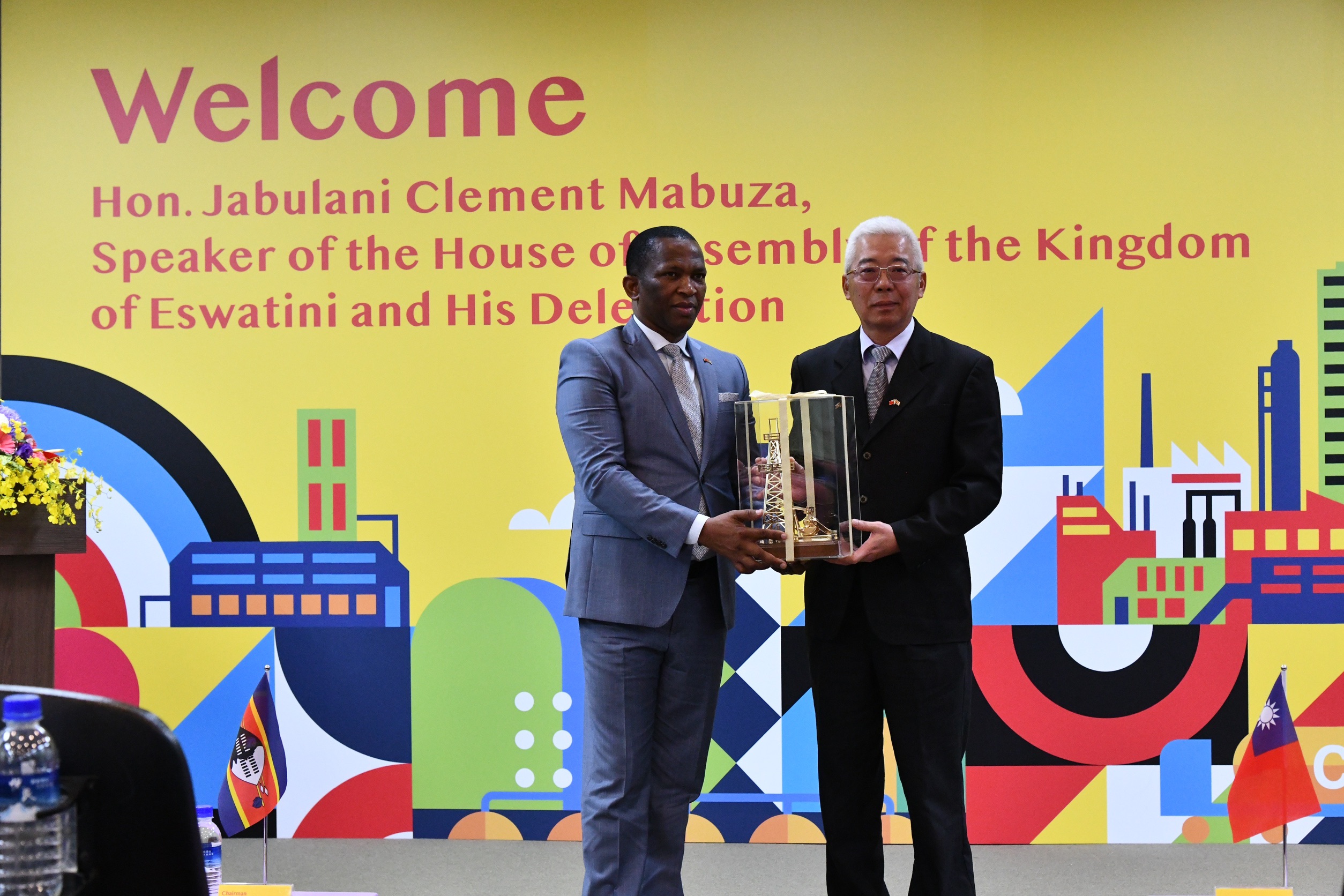 董事長方振仁致贈史國議長馬布札「出磺坑井架與抽油機模型」作為紀念,象徵油人利用探勘技術開採資源,以及台灣石油產業邁入工業化之意涵,史國則回贈以史瓦帝尼國旗與傳統紋飾設計的披巾,及以串珠編織成台史兩國國旗的飾品,並穿掛在方董事長身上,象徵友誼與祝福,同時也期盼雙方持續深化能源與經濟合作、互惠與發展。