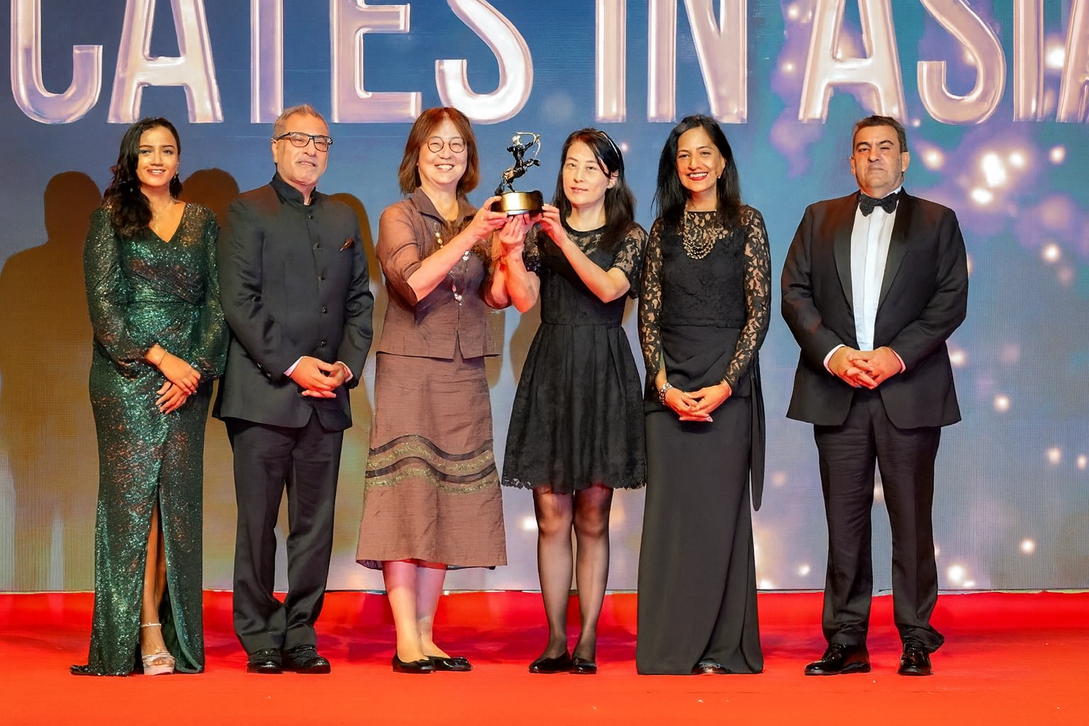 「2025 亞洲卓越企業暨永續發展獎」27日舉行頒獎典禮,台灣中油由副總經理廖惠貞(中)代表受獎。