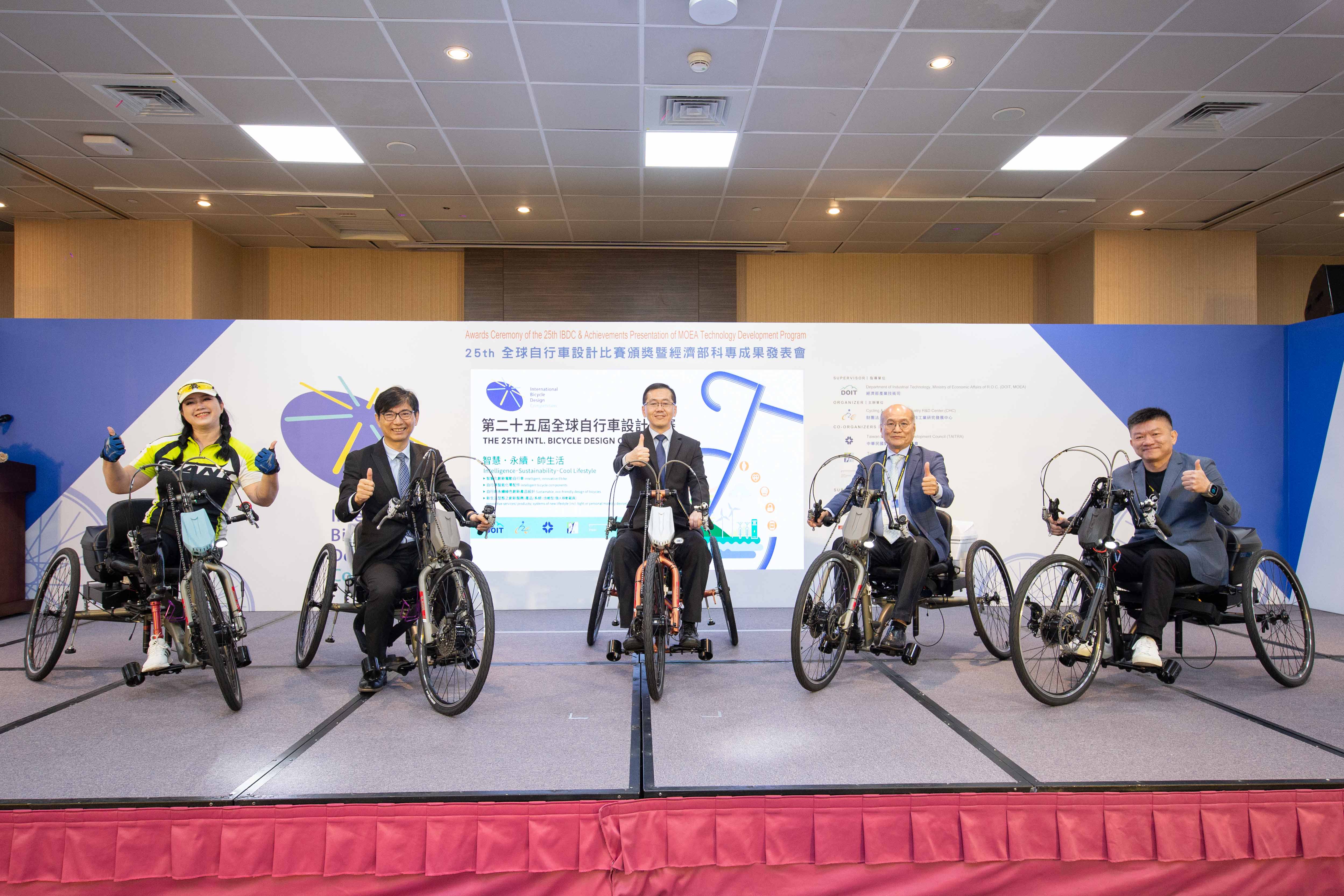 經濟部今(6)日舉辦第25屆全球自行車設計比賽(International Bicycle Design Competition, 以下簡稱IBDC)頒獎典禮,共有17個國家計181件作品參賽。本屆金牌獎由中國設計師張傑「BONUS通勤健身雙用單車」奪冠,銀牌獎「DUAL C環保滑步電動自行車」、銅牌獎「FILO旋轉艙概念車」則分由臺灣設計師江浩禎、廖千岳等奪得。典禮中亦同步發表兩項科技專案研發成果,第一項是大幅提升各方面功能的身障手搖車2.0,將可提供身障朋友更安全、健康的運動載具。另一項則是A+計畫補助台達開發的「電動輔助自行車(E-Bike)智慧動力系統」,尺寸大幅縮小但卻搭載強大的動力輸出扭矩,並因外觀整圓搭配吊架精簡,可大幅提升車架設計的自由度。