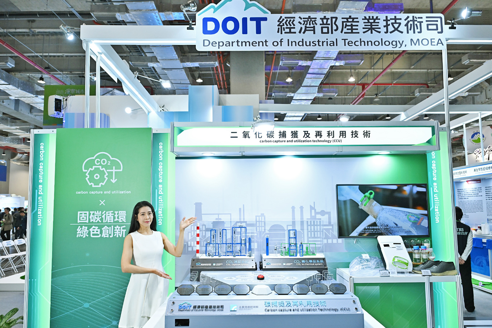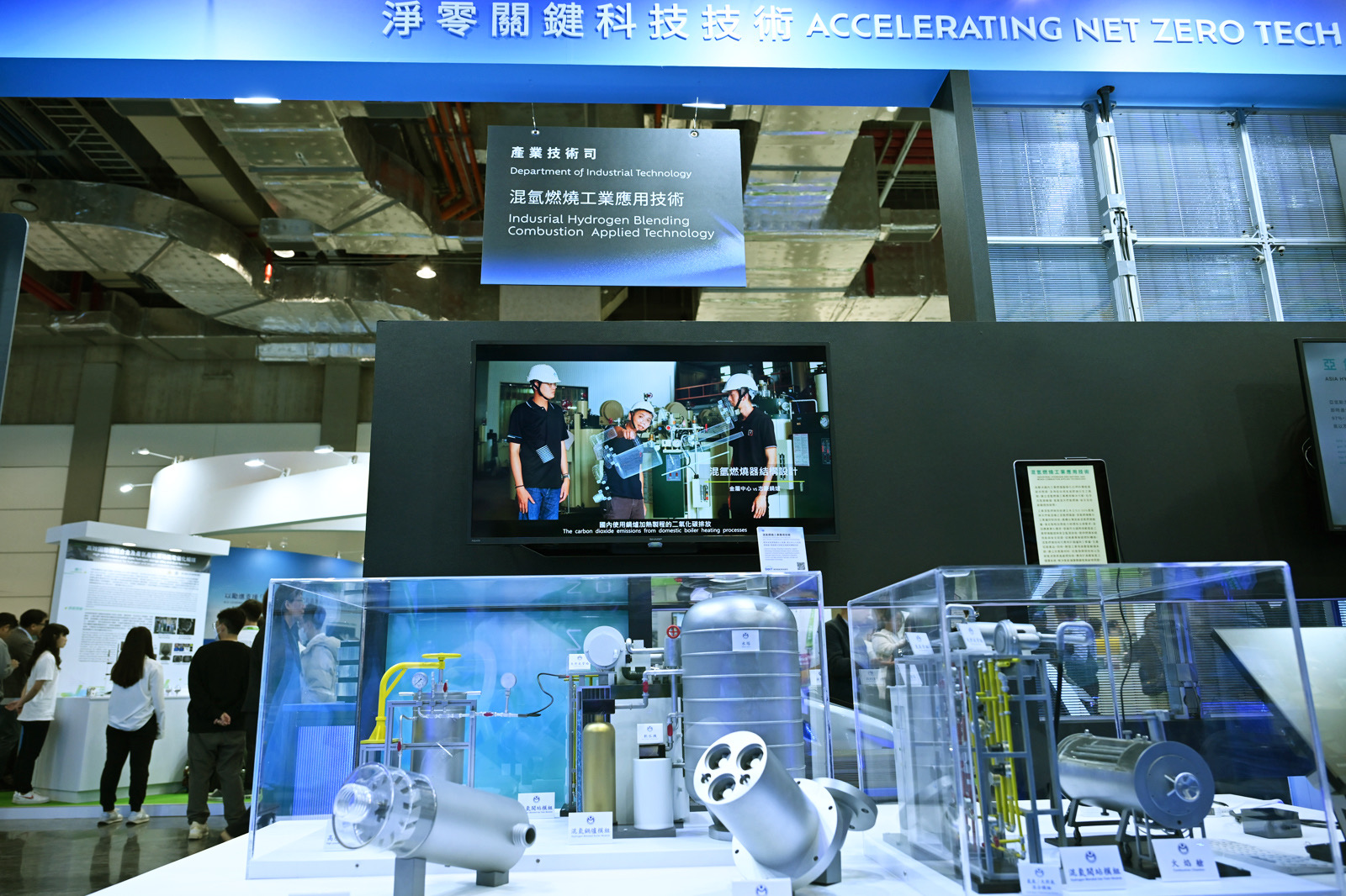 經濟部產業技術司戴建丞簡任技正表示,此次共展出14項產業化成果,都已跟產業合作應用,包括幫助國內產業搶攻氫能載具的電動車超級大腦「混合電力控制器」、建立紡織品全循環生態的「再生聚酯超細纖維技術」與「100%可回收聚酯運動鞋」、新一代固碳PC的「二氧化碳捕獲及再利用技術」、全臺首創工業低碳轉型利器「混氫燃燒器與測試驗證及輸儲系統」。