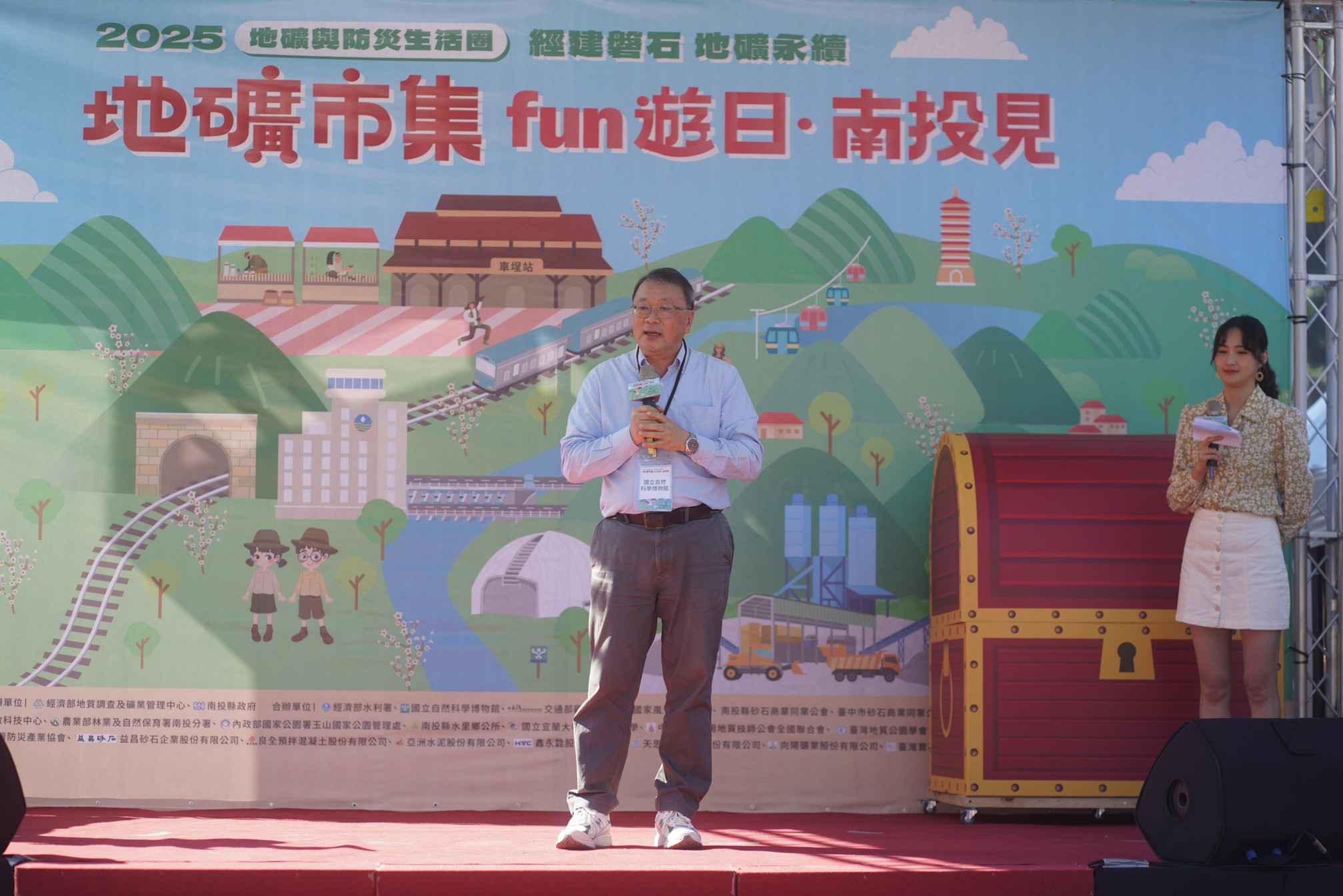 為推廣地質與防災知識,並促進地礦資源的永續利用,經濟部地質調查及礦業管理中心與南投縣政府合辦「2025地礦與防災生活圈」,在水里鄉車埕鐵道文化廣場辦理地礦市集,透過寓教於樂的方式,讓民眾輕鬆認識地質防災與砂石產業的重要性,同時結合地方文化與觀光,展現南投在地的自然魅力與產業活力。