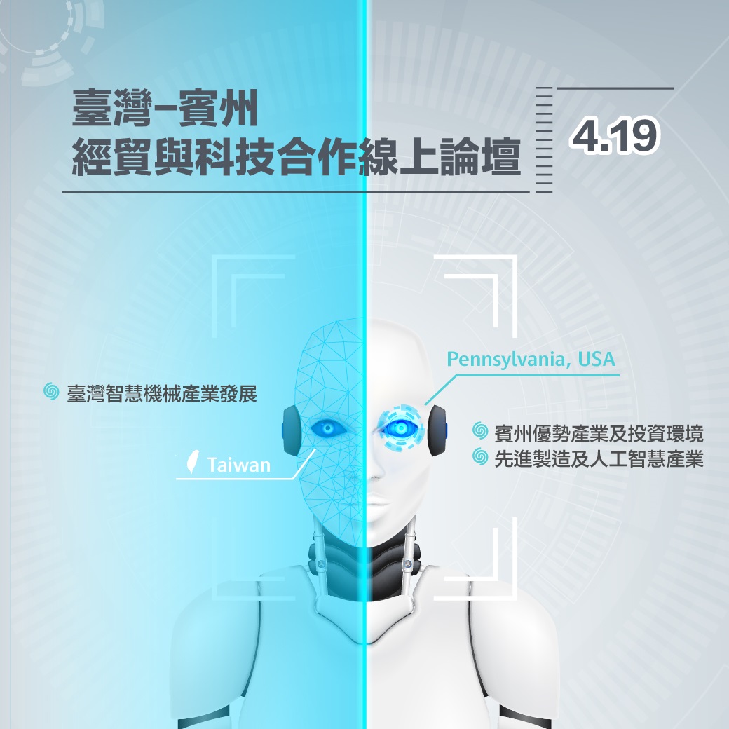 為慶祝美國賓州今年3月恢復在臺設立貿易投資辦事處,貿易局、賓州經濟發展廳與駐紐約臺北經濟文化辦事處於今(19)天舉行「臺灣-賓州經貿與科技合作線上論壇」,藉由分享雙方先進製造及智慧機械產業發展進程,開啟合作商機。