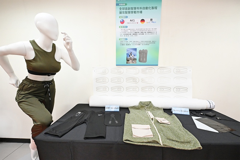 -德國助攻 愛克智慧開發耐水洗智慧電子布料 : 愛克智慧與德國阿亨工業大學等及設計公司 Entwurfreich等單位合作,突破產業瓶頸,開發出「耐水洗智慧電子布料」連續生產技術,為全球首創全自動、連續運轉的一站式生產線,可大幅縮短工序並降低成本,首波訂單達30萬件,應用涵蓋智慧服飾、運動與復健穿戴裝置。目前已獲7國9家品牌青睞,接單逾30萬件。