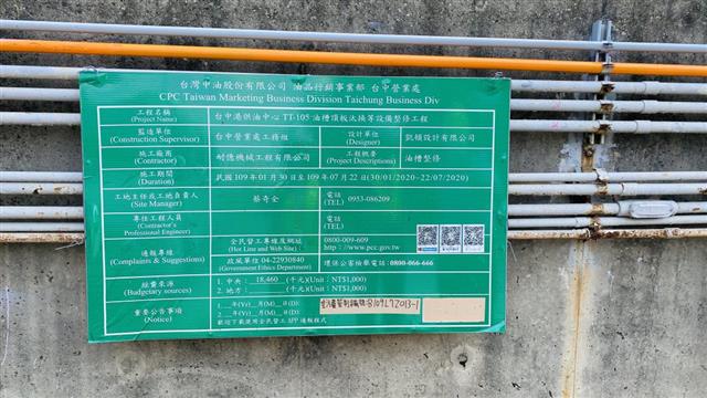 本部工程施工查核小組查核「中油公司台中港供油心油槽頂板汰換等設備整修工程」