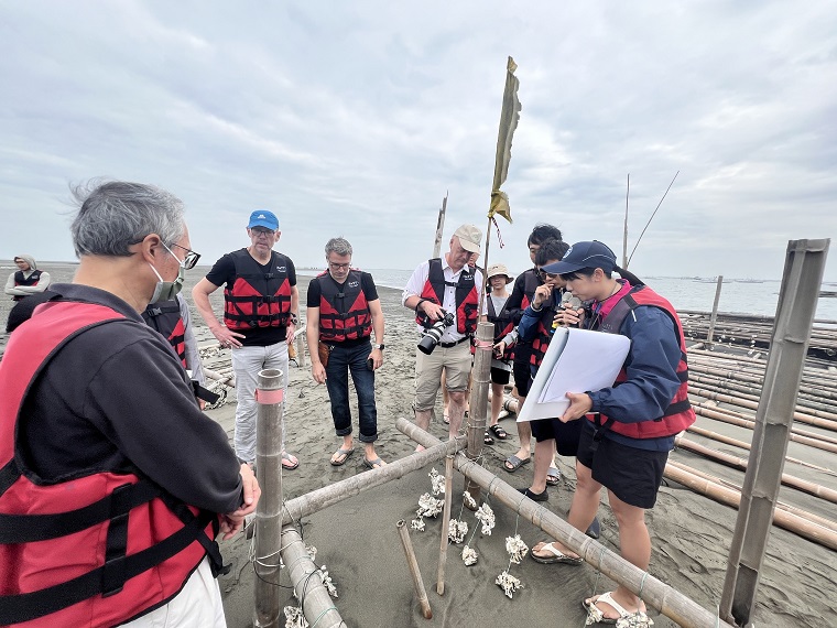 為因應氣候變遷加強海岸防護,水利署於11月29日至12月1日邀請德國海岸防護專家兼水利署國際顧問Peter Froehle 教授、海洋工程與氣候變遷調適專家Frank Thorenz 博士與水利工程、海岸工程專家Frank Nohme 研究員及成功大學水利及海洋工程學系董東璟教授現勘外傘頂洲、黃金海岸與宜蘭頭城大坑海岸瞭解目前治理成果及海岸侵襲情形,其間並於經濟部水利署針對兩國海岸保護對策與自然工法落實於海岸保護之可行性進一步交流。三位德國專家對於水利署目前於外傘頂洲之防護作法予以肯定,除已顯現沙灘逐漸回淤成效,水利署第五河川分署與在地民眾合作,利用廢棄蚵架固灘之作法,亦十分符合基於自然的解決方案(Nature-based Solutions ,NbS) 之國際潮流。