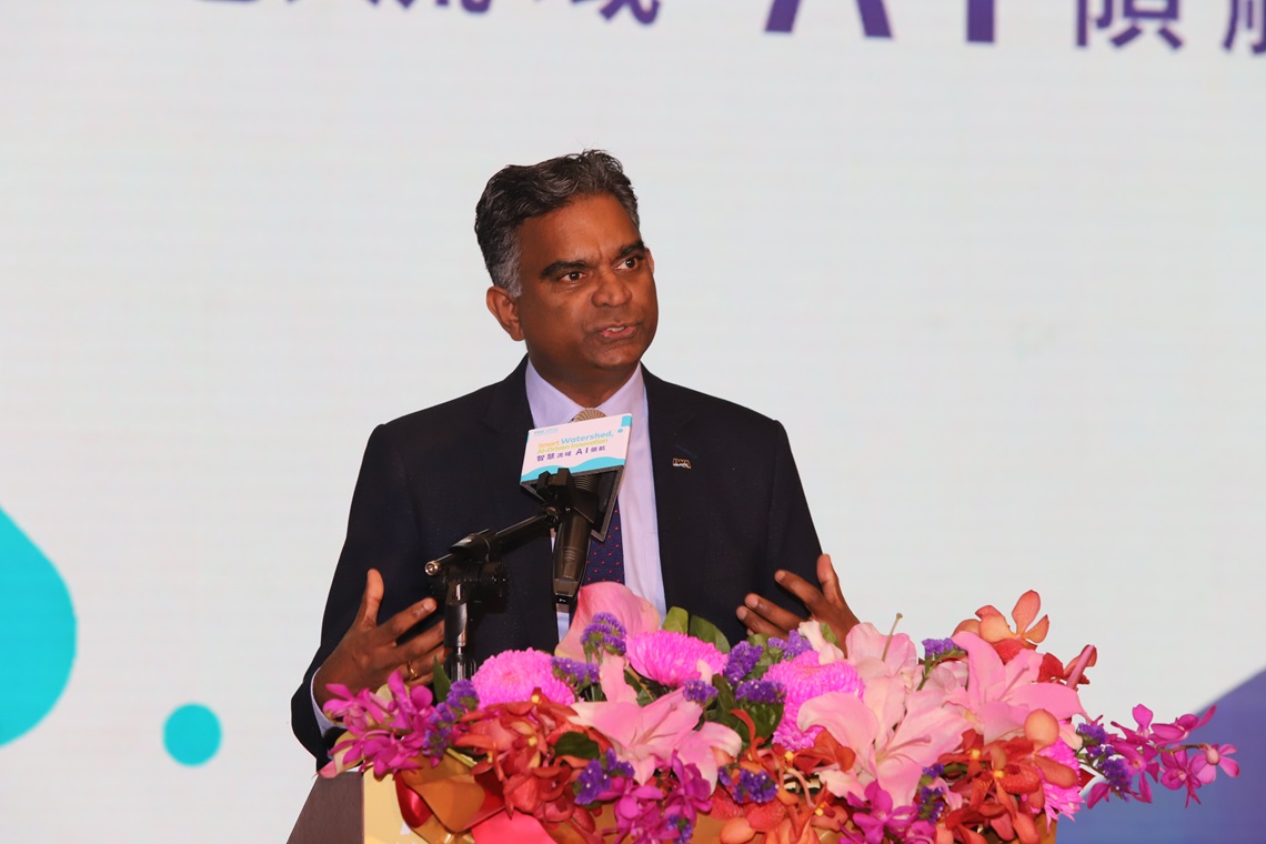 隨後,國際水協會Kalanithy Vairavamoorthy執行董事以「AI驅動的水資源管理」為題,探討AI在水資源使用管理、碳排放及永續發展的多元應用與相互影響;需藉由有效整合各項數位技術、推動機制有效協調決策,方能提高整體水資源的系統韌性,為全球各地區提供質優量足且不虞匱乏的永續水資源。